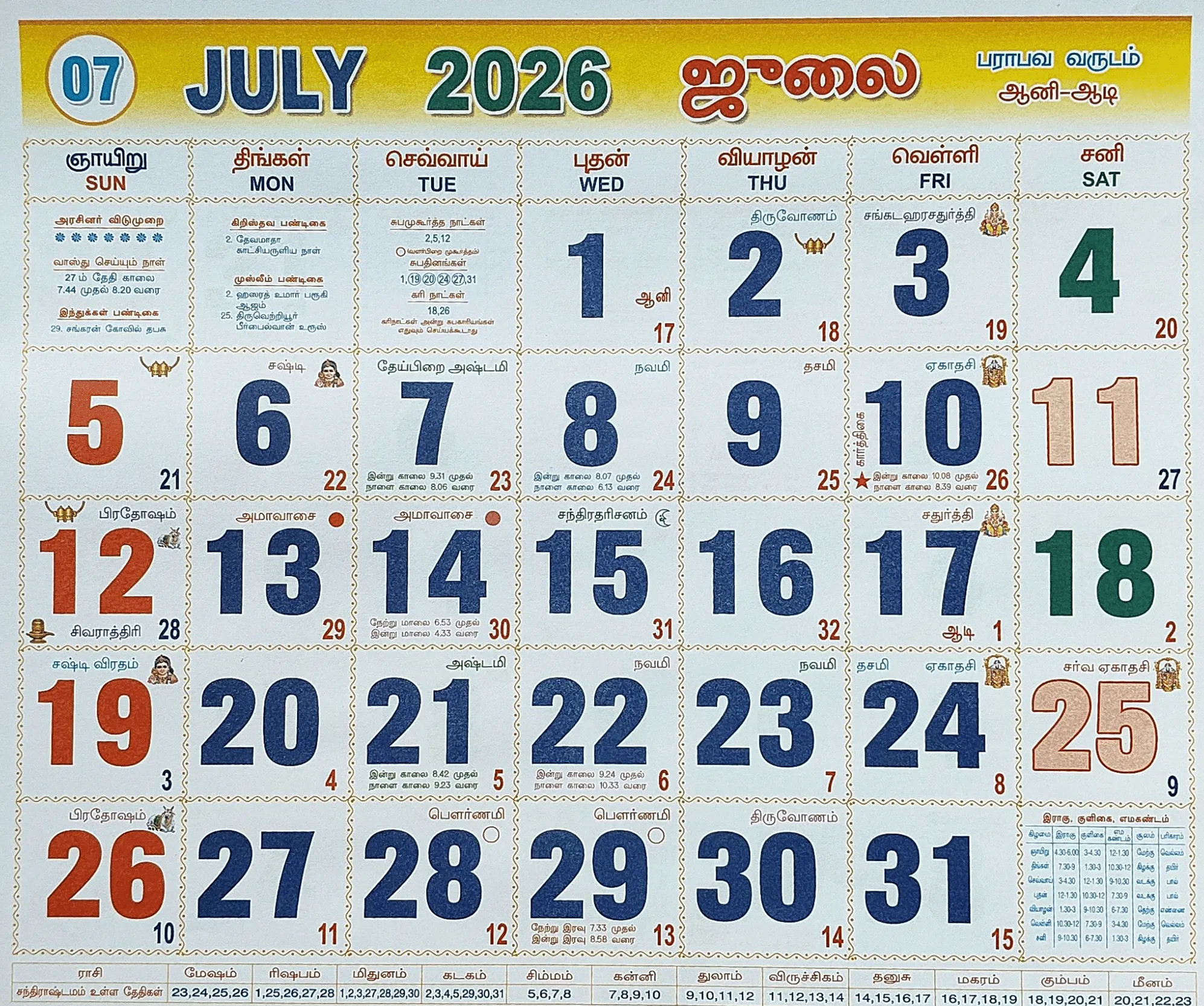 July 2026 Tamil Calendar