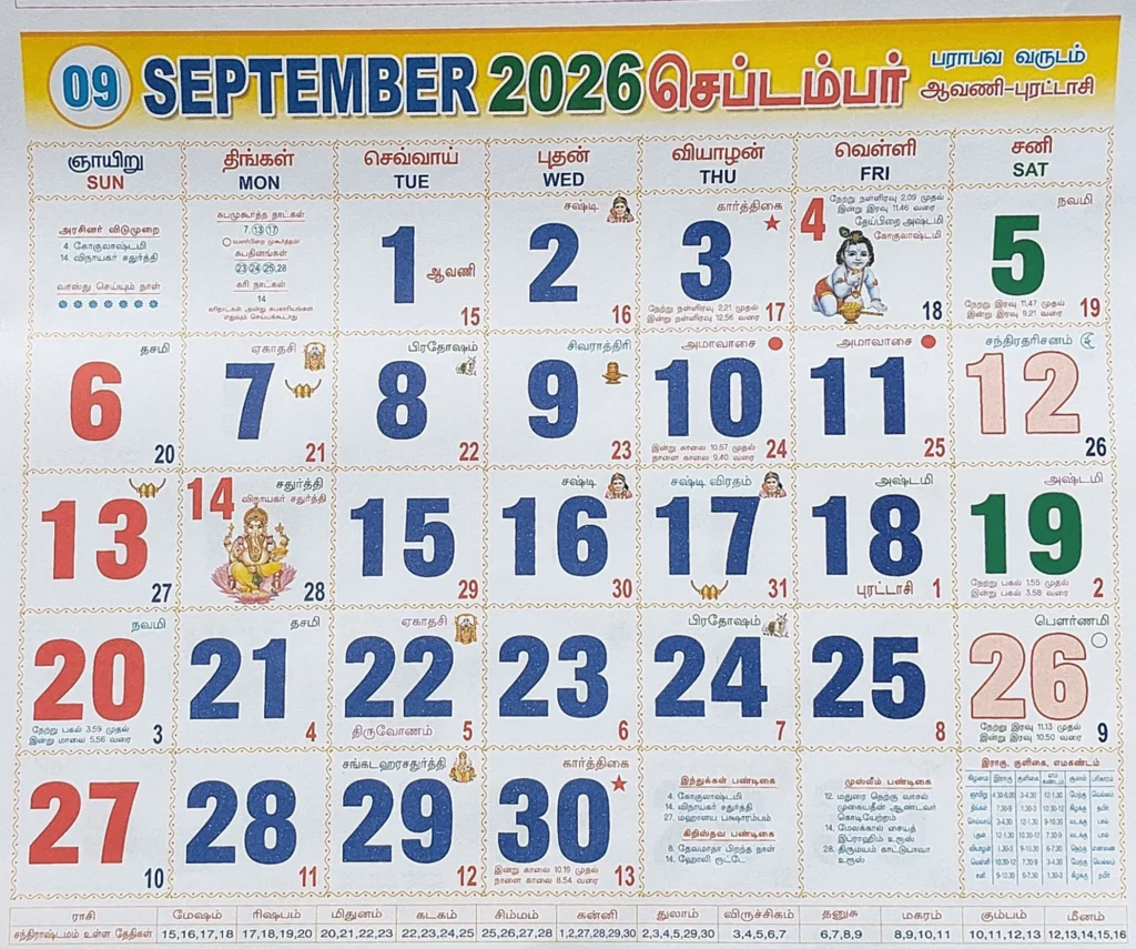 September 2026 Tamil Calendar | செப்டம்பர் மாத காலண்டர் 2026